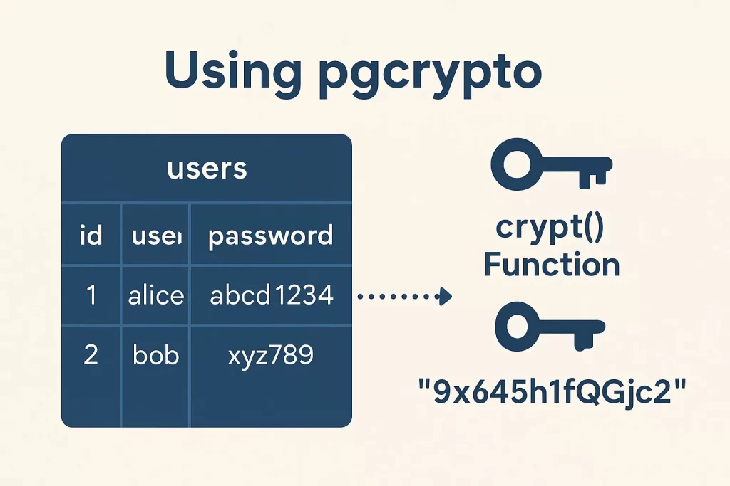 pgcrypto เป็น Extension สำหรับการเข้ารหัส (Encryption) และแฮชข้อมูล เหมาะสำหรับงานที่เกี่ยวข้องกับความปลอดภัย เช่น การเก็บรหัสผ่าน