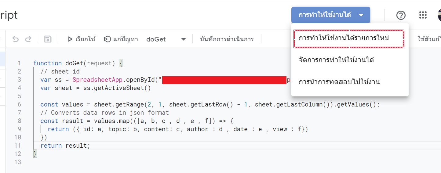 สร้าง API ด้วย App Script ดึงข้อมูลบน Google Sheets