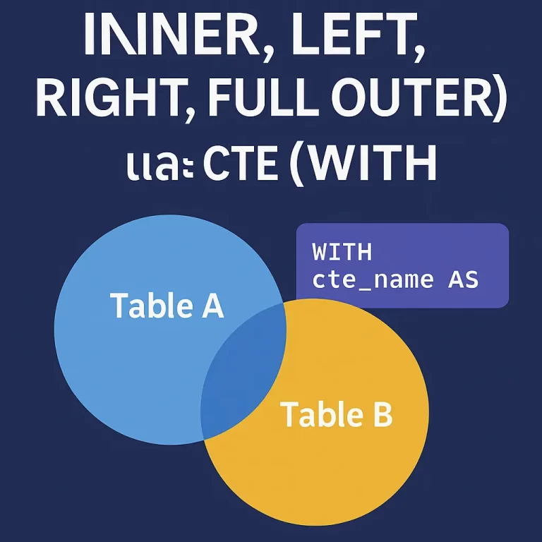 Database, Postgresql, ระดับกลาง (Intermediate)Joins (INNER, LEFT, RIGHT, FULL OUTER) และ CTE (WITH)เมื่อทำงานกับฐานข้อมูลเชิงสัมพันธ์ (Rel… pool1343320/09/2025